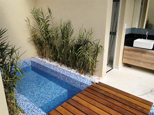 As piscinas pequenas podem ser construídas em vários ambientes, como o quintal da casa ou a varanda do apartamento, em basicamente quatro modelos disponíveis no mercado: