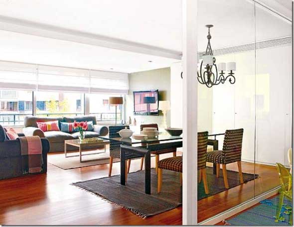 Mas alguns detalhes podem ser usados para diferenciar cada cômodo, como uma pintura diferenciada, um móvel que separa ambos, um tapete, ou outros itens.