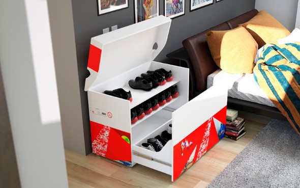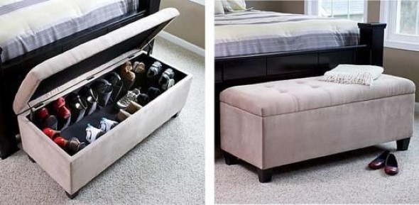 Existem inúmeros modelos de sapateiras criativas a venda, e uma boa escolha é aquela incorporada em outros móveis, como um prático baú para o quarto, que vai deixar os calçados bem organizados, e ainda pode ser usado em outras ocasiões.