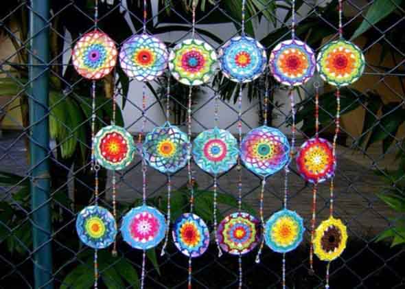 E abaixo vocês conferem mais algumas imagens, que mostram decorações criativas, que foram feitas com o uso de CDs usados: