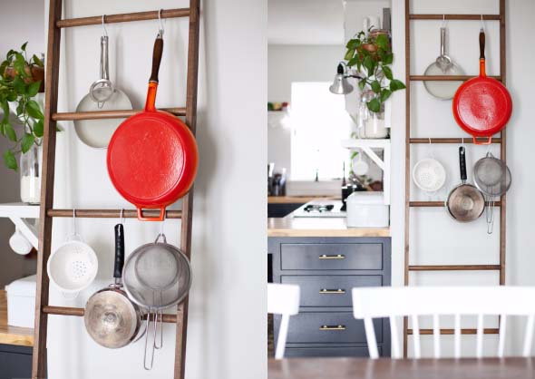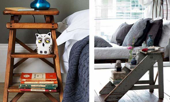 Também é possível montar cabides suspensos com o uso das escadas antigas, que vão se tornar um móvel bem funcional para ter dentro do quarto ou de outros cômodos.