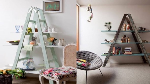 E embora elas tenham sua utilidade como ferramenta de trabalho, as escadas também podem ser usadas na decoração da casa, de uma forma útil e bem criativa.