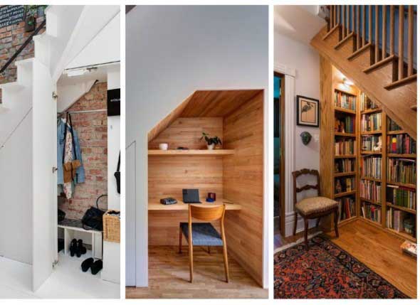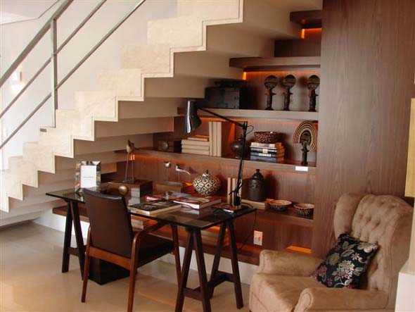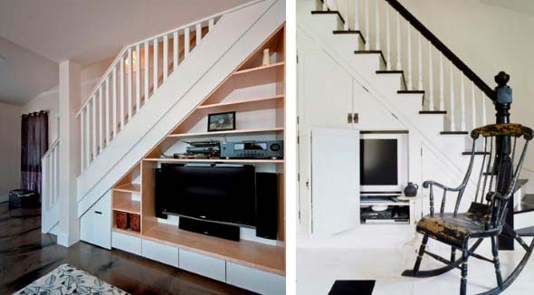 E para lhes ajudar ainda mais, confiram abaixo mais algumas imagens, que ilustram como aproveitar o vão da escada aí na sua casa: