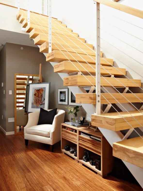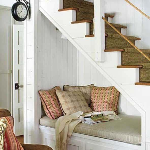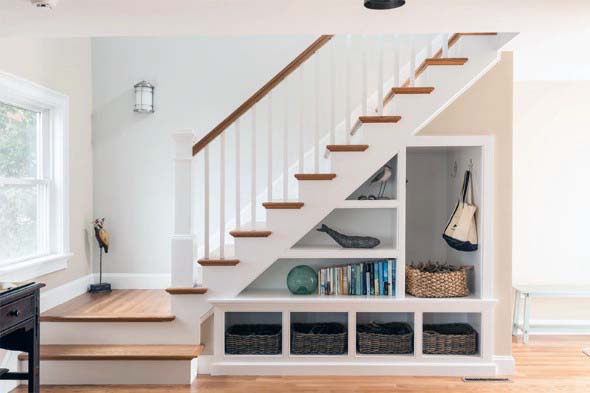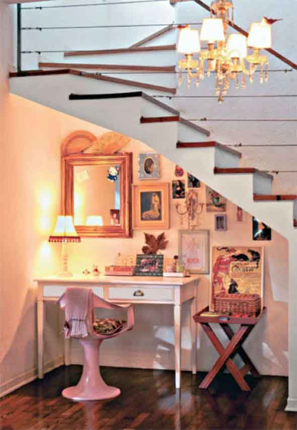 Além disto, em alguns casos a fabricação da escada cria um pequeno vão, que muitas vezes acaba sendo transformado em um espaço útil e muito proveitoso na decoração de casa.