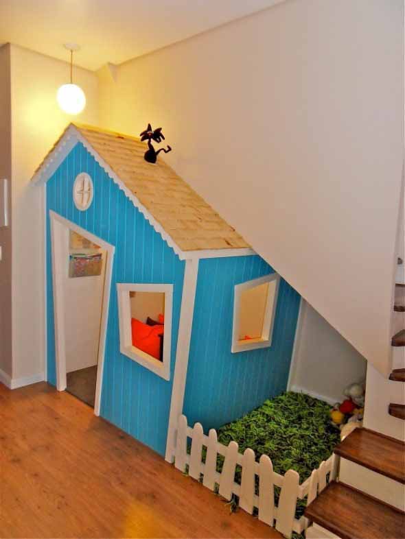 Este vão também pode ser usado para criar um ambiente diferenciado da casa, como um cantinho de leitura, uma despensa, ou até mesmo um espaço de brincadeiras da criançada.