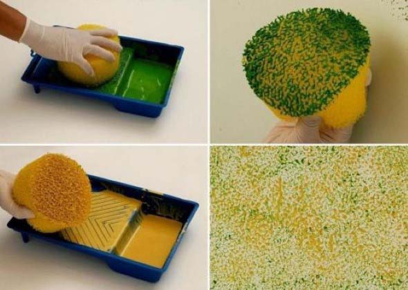 Aquela esponja de cozinha é outro objeto que pode ser usado para pintar paredes, e que já é amplamente usado em pinturas artesanais, de MDF, madeira, etc.