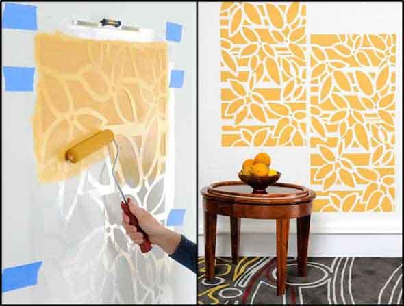 Outra opção é utilizar moldes em papelão ou plástico rígido, que oferecem uma mistura bem variada de desenhos, que ajudam a criar desenhos e imagens diferenciadas nas paredes da casa.