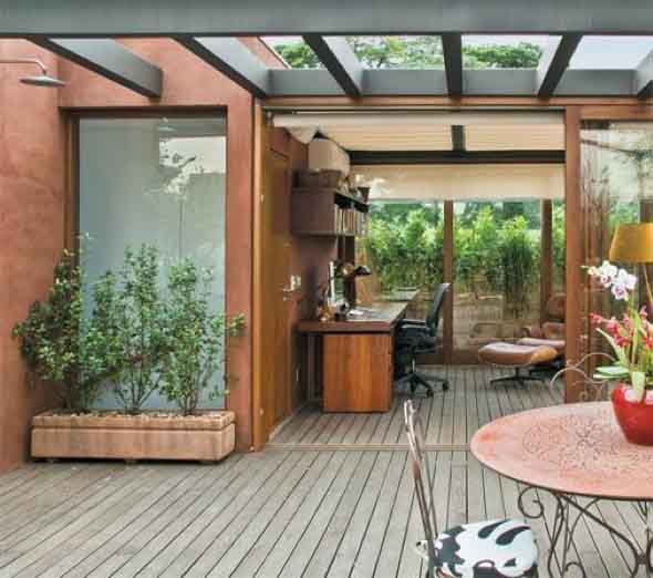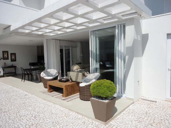 Esta estrutura também pode ser usada na fachada da casa, aonde pode ser incorporada na frente do hall de entrada, na porta da garagem, ou em toda extensão da área externa do imóvel.