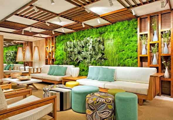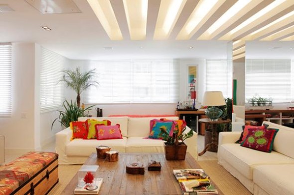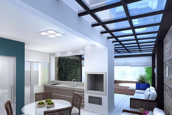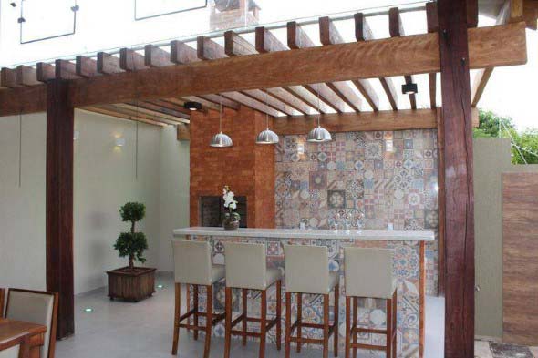 Nestas áreas o pergolado geralmente é montado rente ao teto, mas deixando a estrutura bem a mostra na decoração, o que garante elegância e muito estilo em cada cômodo aonde os pergolados são incorporados.