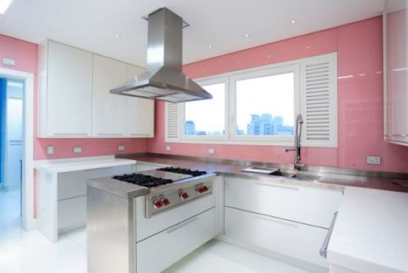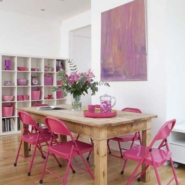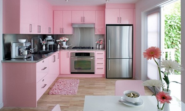 O uso de móveis, armários e até eletrodomésticos na cor rosa também é uma forma bem prática de incorporar esta cor no visual dos cômodos, principalmente nos dias atuais, em que os móveis coloridos se tornaram tão populares.