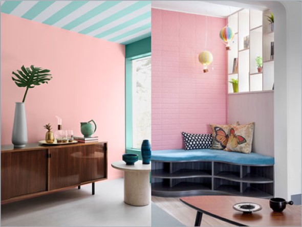 Uma das ideias mais usadas para incorporar uma cor, ou tons desta cor na decoração de casa é com a pintura, ou algum revestimento das paredes, que podem ser feitos em uma pequena reforma ou na hora da construção, e destacam bem a tonalidade desejada.