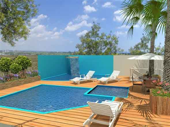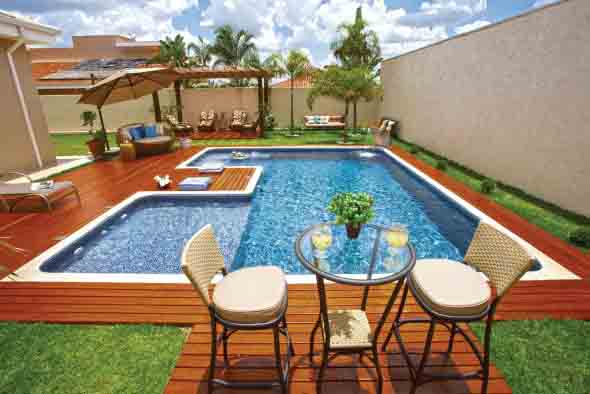 A piscina pode ser construída em modelos de concreto, fibra de vidro ou vinil, e em espaços amplos, como o de uma casa de campo; ou mais reduzidos, como em apartamentos mais compactos por toda cidade.