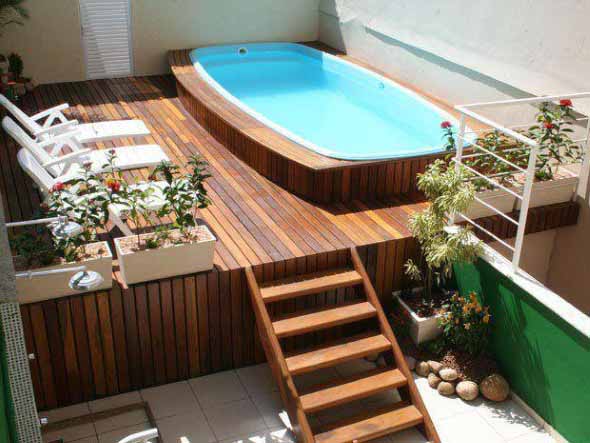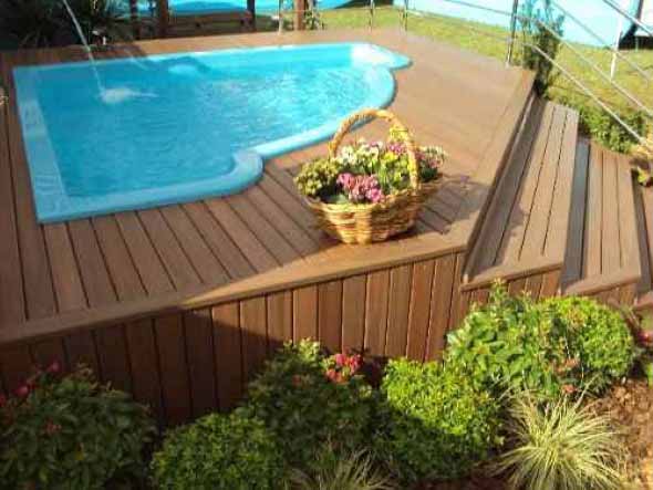 Piscina com deck de madeira