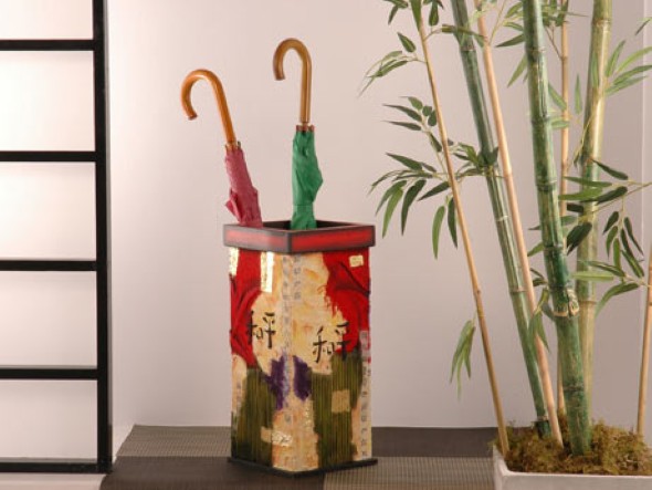 O porta guarda chuvas é um acessório que pode ser fabricado em vários materiais, dentre eles madeira, fibra ou metal, e que pode ser comprado em diversas lojas de decoração.