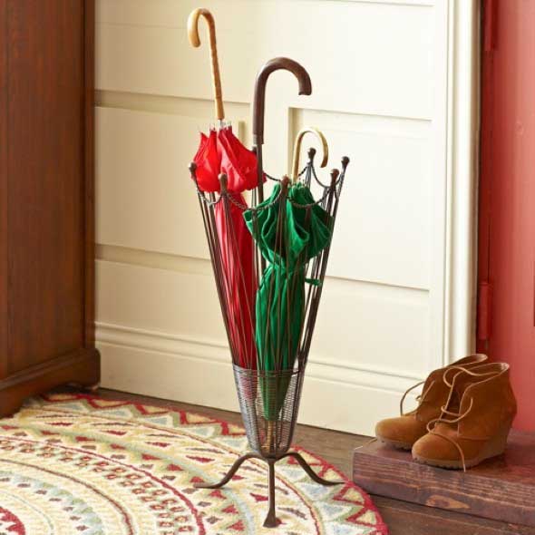 A solução é ter um porta guarda chuvas, um acessório muito simples de usar, e que oferece um bom lugar para guardar o guarda chuva e a sombrinha ali em um cantinho da casa.