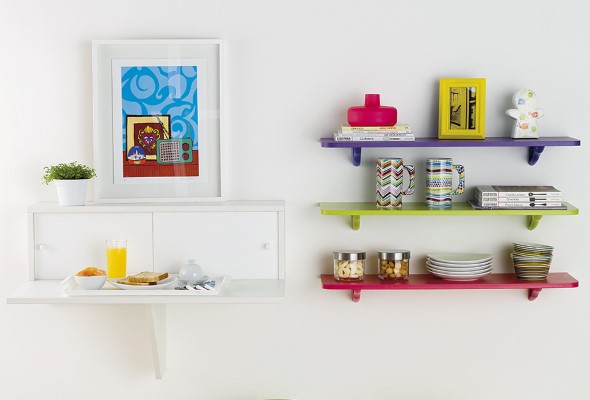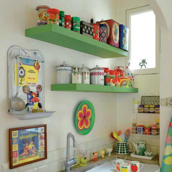 Prateleiras coloridas por toda casa