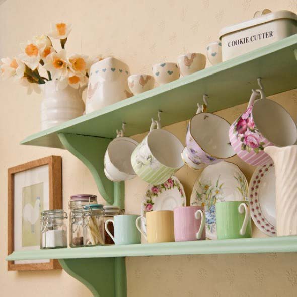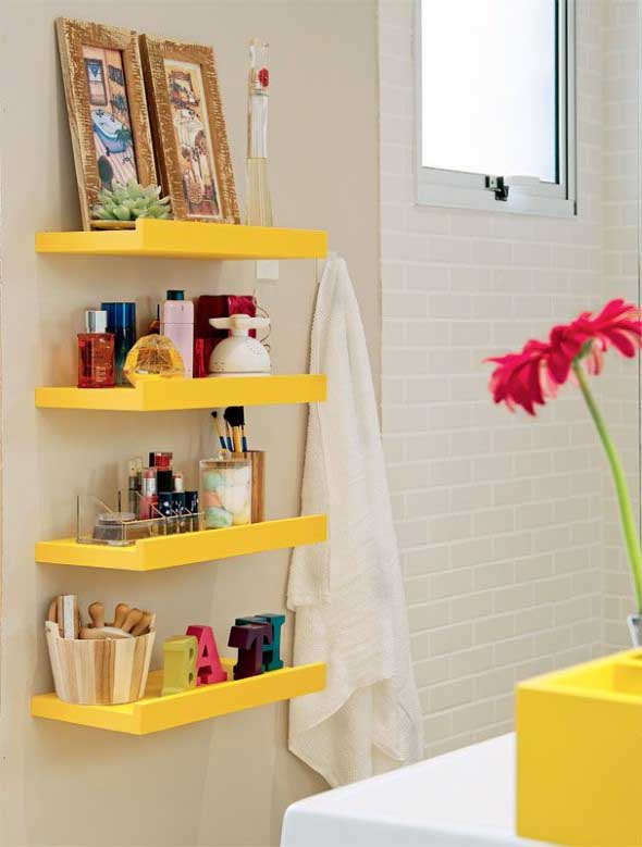 Até mesmo próximas ao teto as prateleiras coloridas podem ser instaladas, e o melhor é que sua cor pode combinar perfeitamente com a decoração do ambiente.