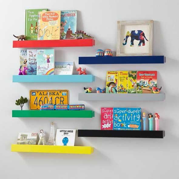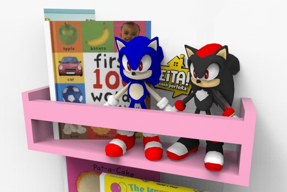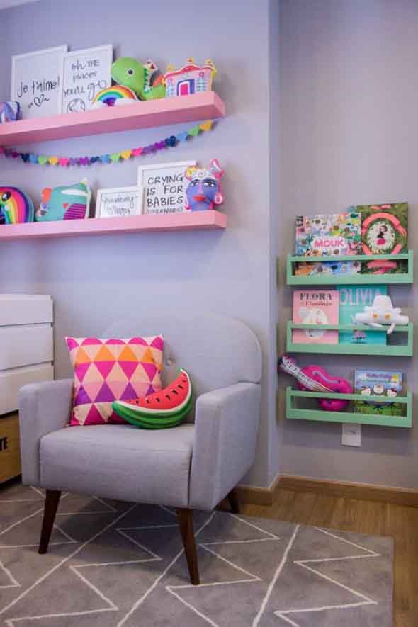 Já para o quarto das crianças podem ser colocadas prateleiras baixas, que servem para deixar livros e revistinhas infantis, que vão lhes ajudar com o hábito da leitura.