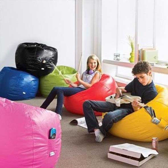 O quarto é outro local aonde os puffs gigantes cumprem bem o seu papel, pois pode ser incorporado no quarto de toda família.