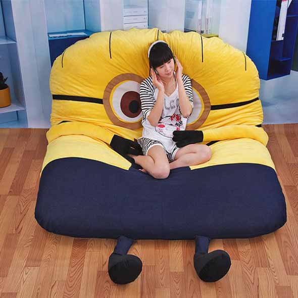 Outra dica bem legal são os puffs em formato de figuras animadas, que fazem sucesso entre adultos e crianças, graças ao seu charme sem igual.