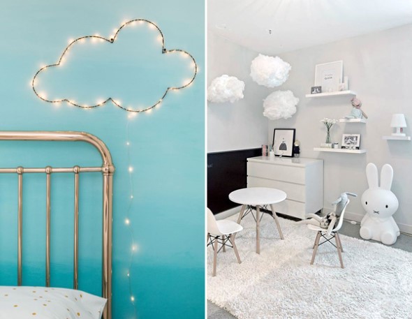E para lhes trazer mais inspiração, confiram abaixo mais algumas imagens, que mostram quartos decorados com nuvens: