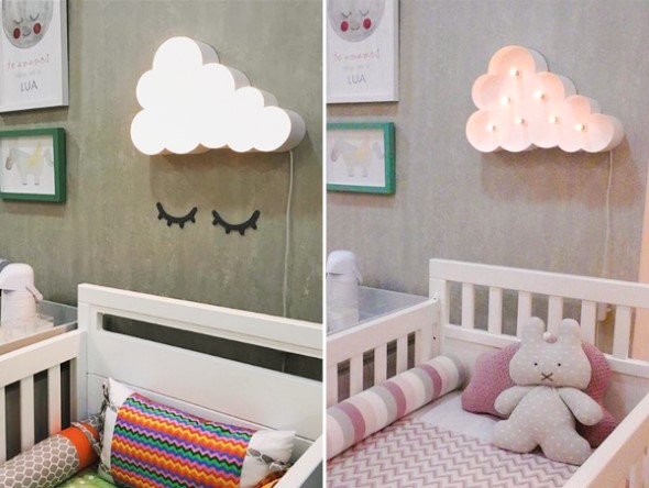 E uma dica que vem fazendo sucesso no quarto das crianças é a decoração com nuvens, que podem ser colocadas de diversas formas, transformando o ambiente em um local charmoso e bem convidativo.