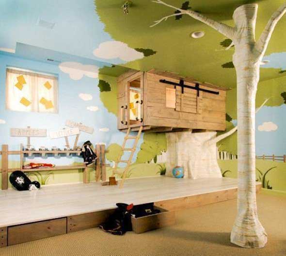 Imagens de quarto infantil com o tema casa na árvore