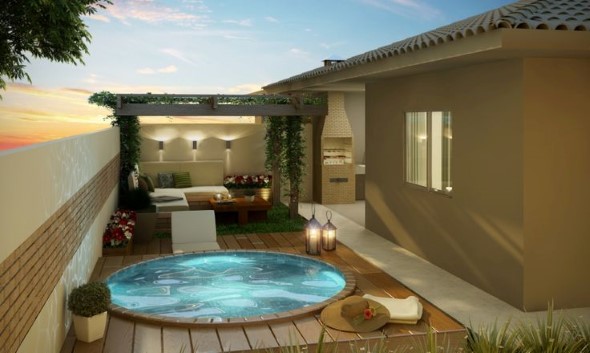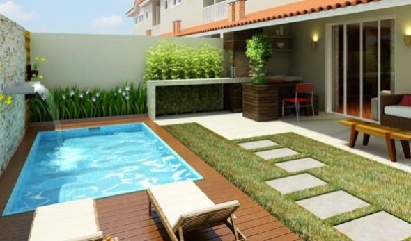 Até uma piscina pode ser montada em um quintal pequeno, e com isso toda família poderá se refrescar nos dias mais quentes do ano.