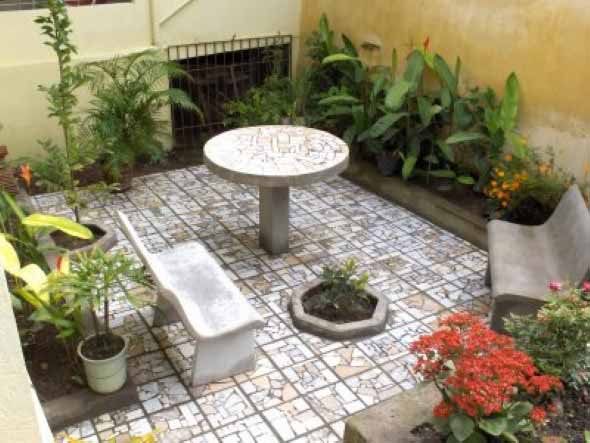 Este quintal pequeno pode ser feito na frente da casa, com um canteiro de flores, uma mesinha e algumas cadeiras para aquela leitura no final da tarde.