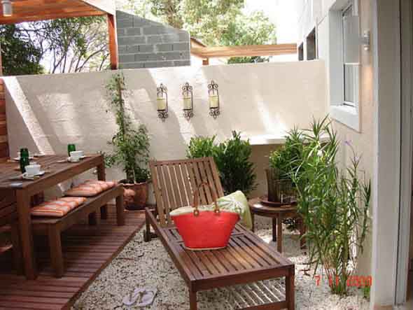 E abaixo vocês conferem mais algumas imagens de quintais pequenos, muito charmosos, elegantes e aconchegantes: