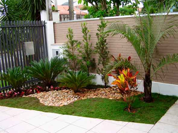 Seu projeto também se adapta muito bem nos fundos do imóvel, aonde o paisagismo pode ser mais detalhado, com o uso de flores, pedras, poltronas, guarda-sol, etc.