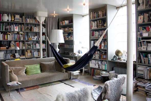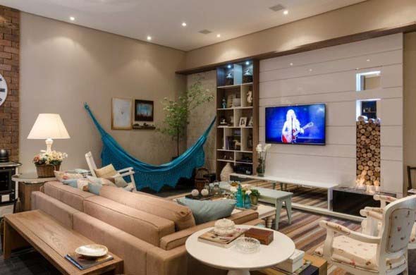 E abaixo vocês conferem mais algumas imagens, que mostram redes de descanso decorando a sala de estar: