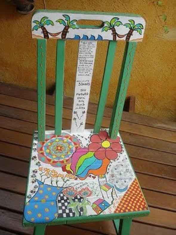 E aí na sua casa você também pode fazer a restauração de alguns móveis, como as cadeiras velhas, que vão ficar com um visual encantador.