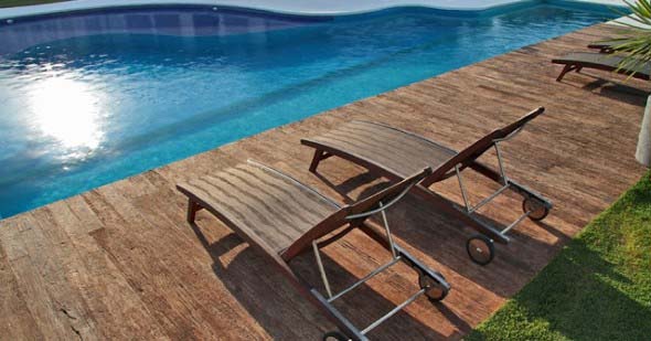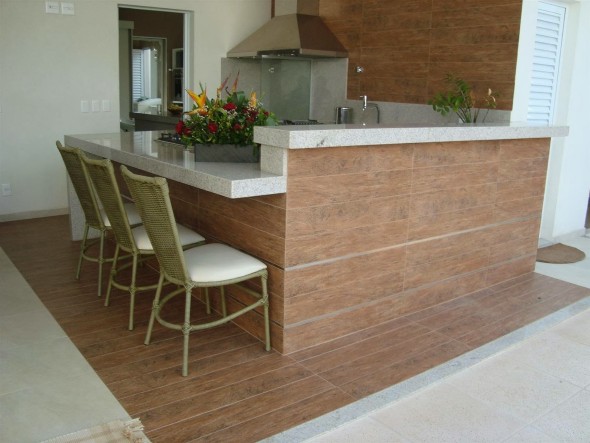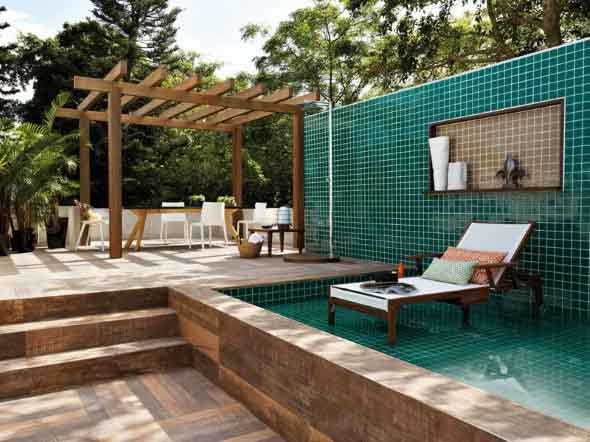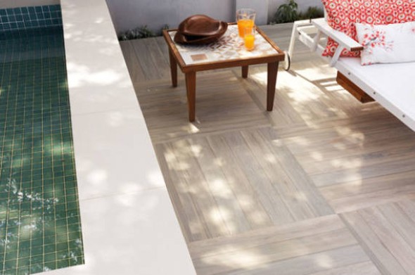 Até em áreas externas o revestimento que imita madeira faz um enorme sucesso, e ganha seu destaque no visual decorativo.