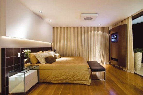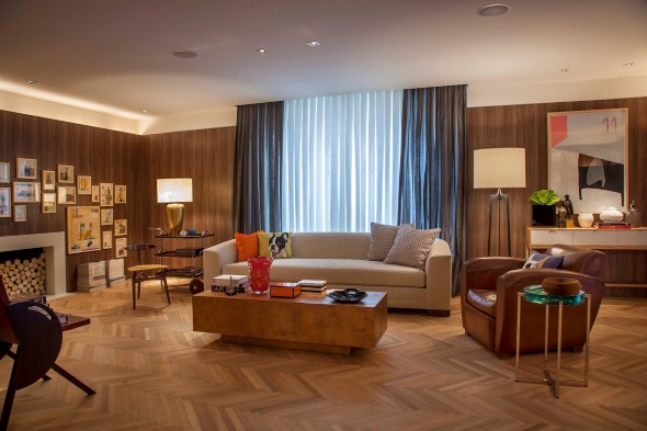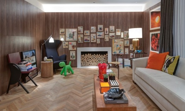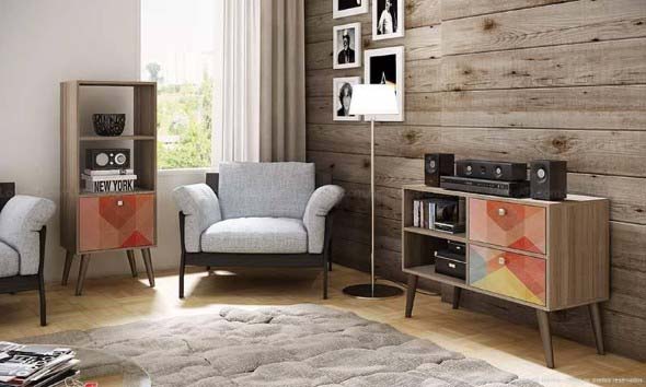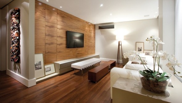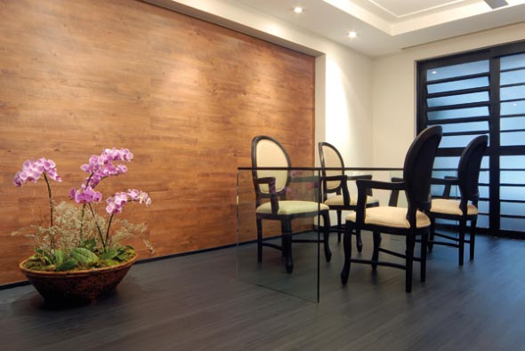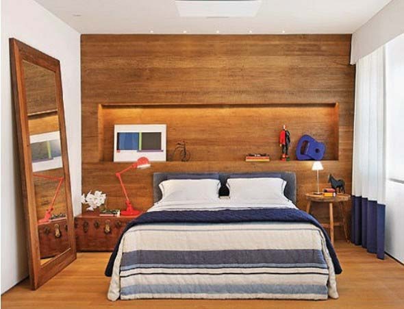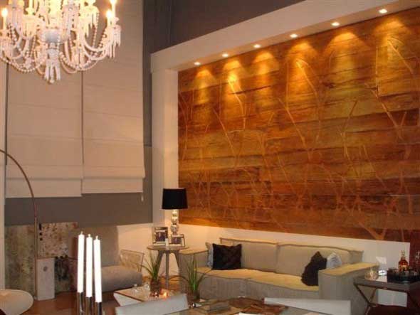 Nas paredes podem ser instalados grandes painéis de revestimento amadeirado, e com isso dar um novo visual em cada ambiente.