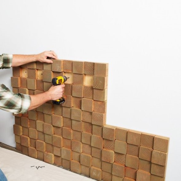 Para revestir paredes com blocos de madeira, ou com cubos de madeira, o primeiro passo é a escolha da área desejada, que pode ser uma parede inteira, ou apenas uma área em destaque.