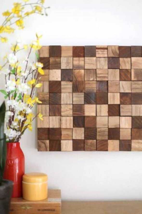 Também é possível comprar os painéis com blocos de madeira em lojas de decoração, que podem ser fixados em casa com facilidade.