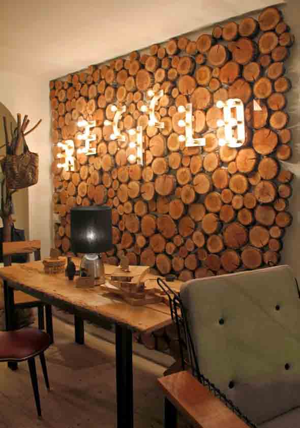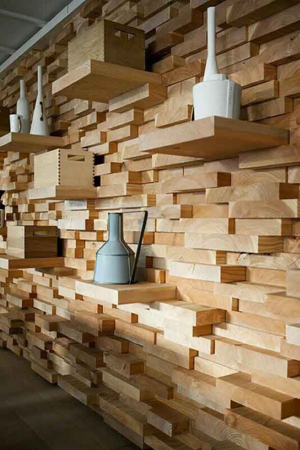 E abaixo vocês conferem mais alguns modelos de paredes que foram revestidas com blocos de madeira: