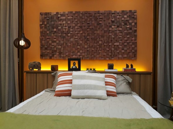 Depois é só curtir este charmoso efeito 3D que os blocos de madeira oferecem em praticamente todos os ambientes da casa.