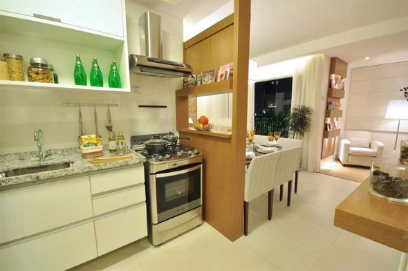 Em projetos atuais uma opção é a mudança do tipo de piso, ou dos revestimentos das paredes, que ajuda a criar a sensação de divisão entre os ambientes.