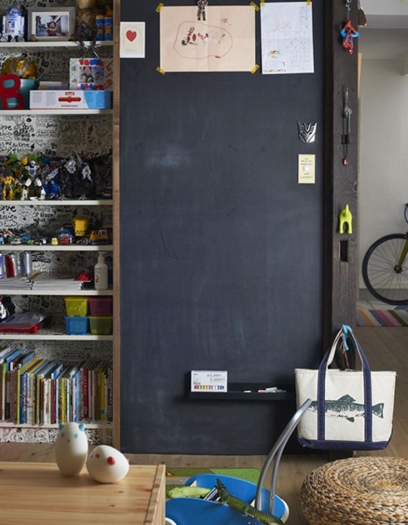 A tinta lousa também cria ótimos painéis para quem trabalha com artesanatos, que podem aplicar a tinta não só nas paredes, como em mesas um uma superfície de MDF, e assim ter uma área para rascunhar suas idéias criativas ao longo do dia.