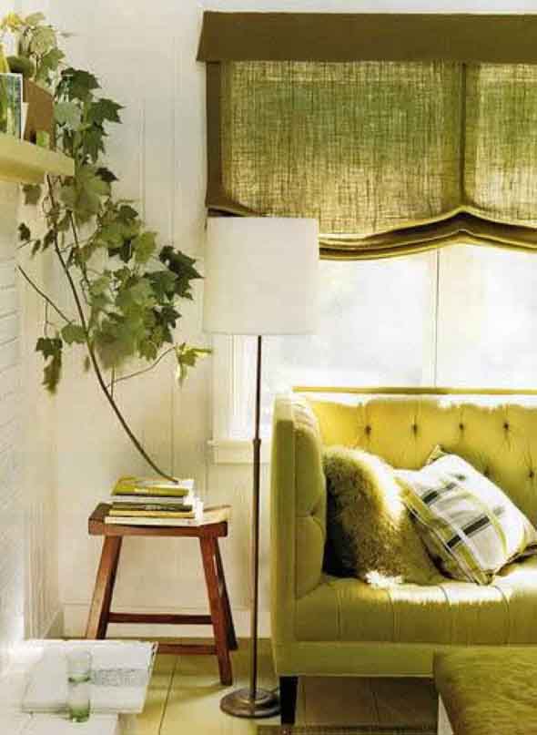 Para finalizar indicamos objetos de decoração, como cortinas, tapetes, almofadas, vasos, etc., que ajudam a realçar o verde na decoração de toda casa.