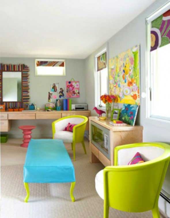 Alguns móveis, como sofás, cadeiras, armários e puffs, podem ser comprados em diversos tons de verde, e vão dar aquela incrementada no visual decorativo, de uma forma discreta mas sempre presente.