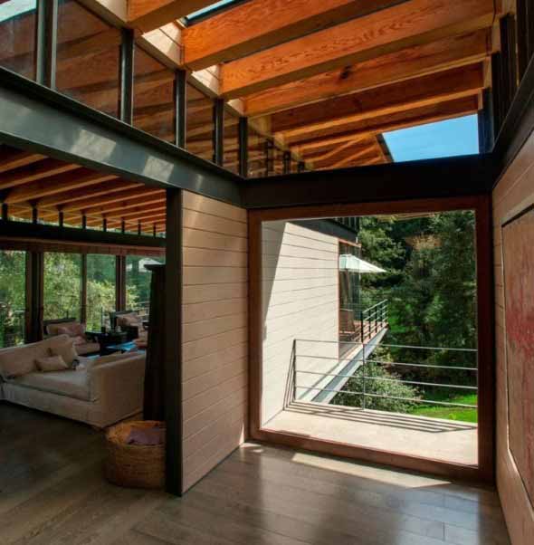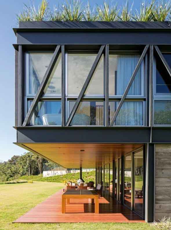 Nesta linha podemos ter, em um projeto mais atual, toda a estrutura da casa, ou boa parte dela, feita com o uso de vigas de aço, que podem ser deixadas a mostra em diversos ambientes da casa, em especial na área externa do imóvel.
