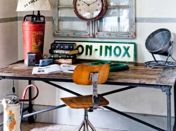 Usar móveis de ferro e madeira rústica, bem como itens de época também contribui para criar este estilo de decoração aí na sua casa.